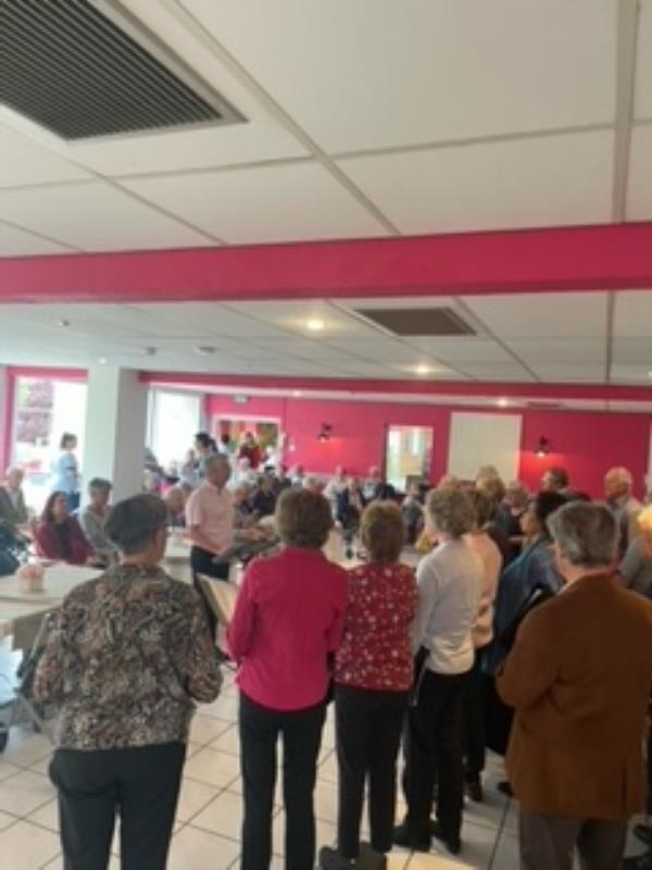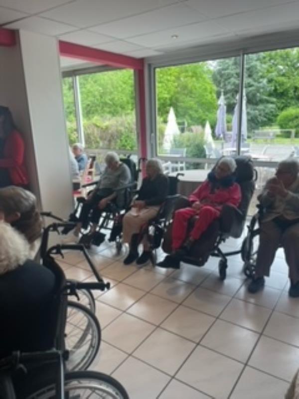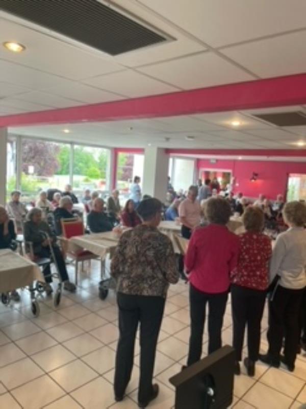 Vendredi, la résidence a mis à l'honneur les résidents nés au mois de mai. Pour l'occasion, la chorale de Gouvieux est venue pour célébrer ces anniversaires. Une des résidentes, Madame D, dont c'était l'anniversaire, à chanté avec la chorale. En effet, Mme D en faisait partie il y a encore peu de temps. De belles retrouvailles et de bons moments partagés.