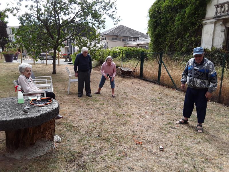 Une belle après-midi en animation entre un petit bac et une partie de pétanque dans le parc de la résidence Les Lys.