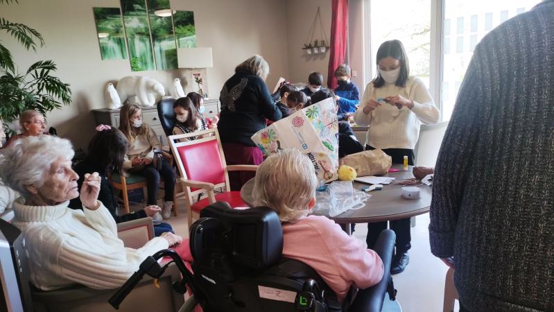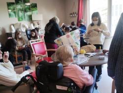 Avec les résidents, ils ont réalisé une activité manuelle " Pompon".