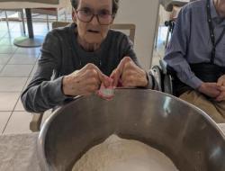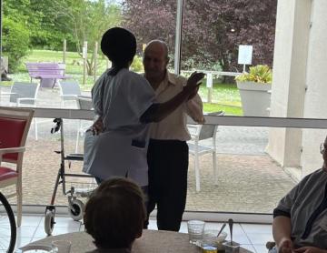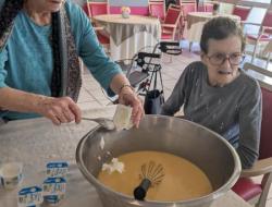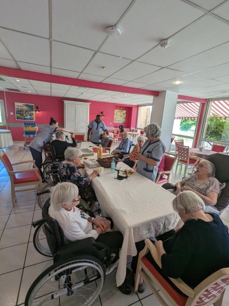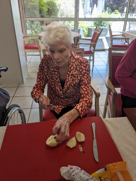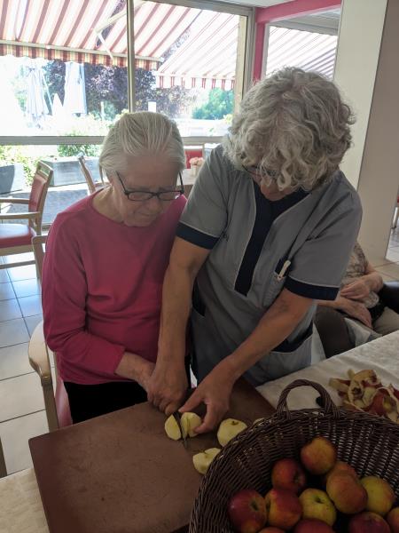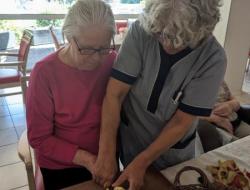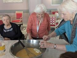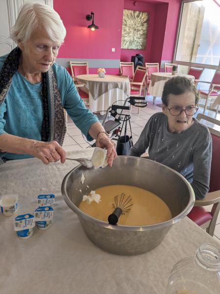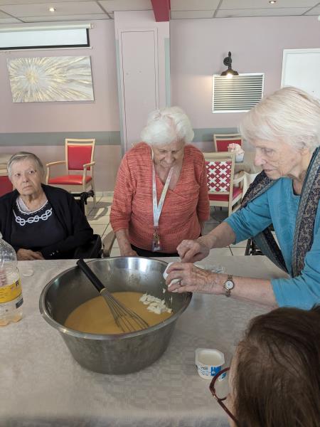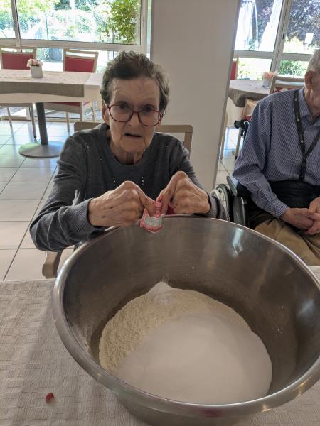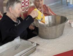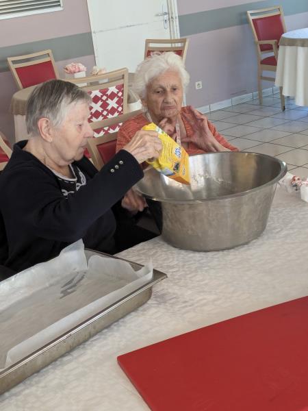 Samedi après midi, en compagnie des aides soignants, des résidents ont participé à un atelier pâtisserie pour faire des gâteaux pour le lendemain pour le gouter des résidents. Verdict : un régal. Les résidents en ont eu plein les mains et pleins le coeur. Chacun à mis la main à la pâte.