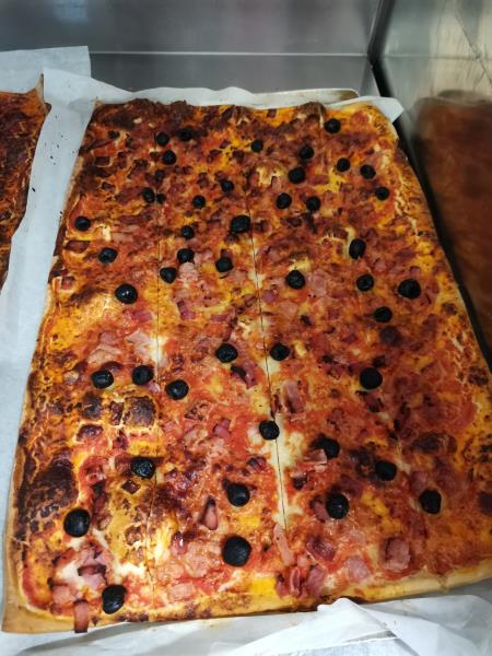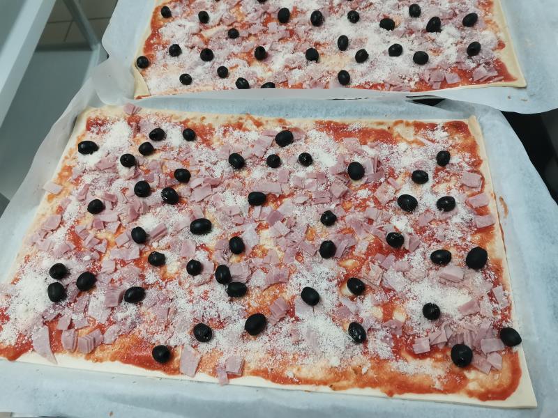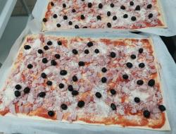 De bonnes Pizzas tomates, jambon , parmesan et sans oublier les olives.