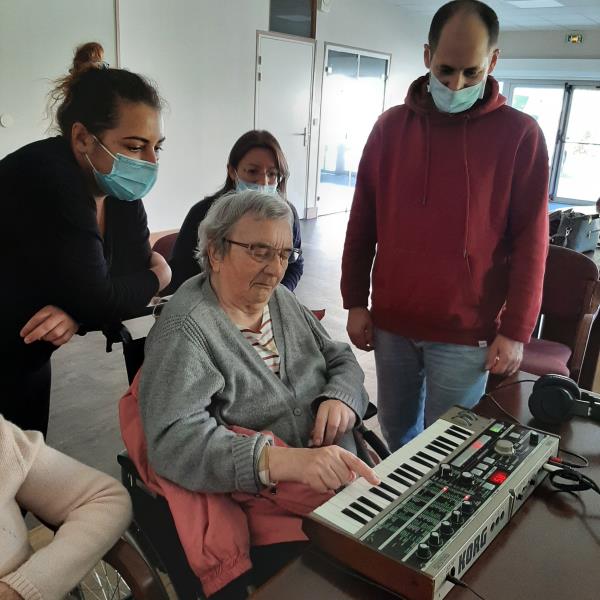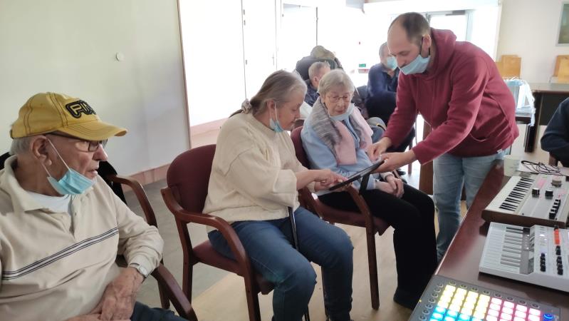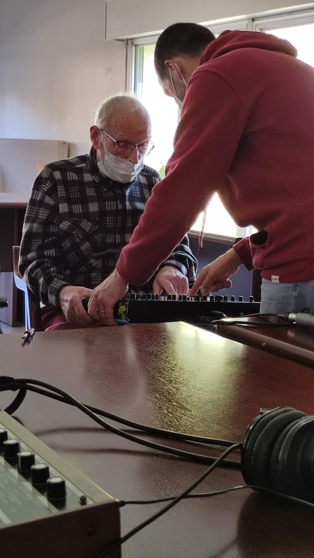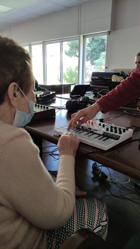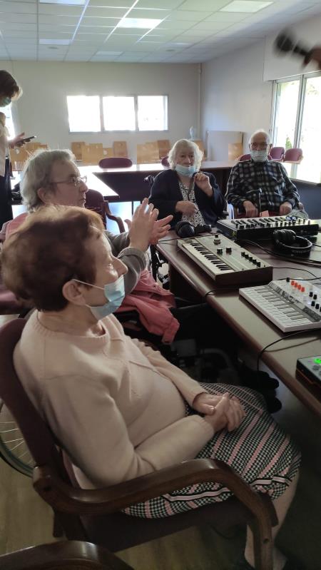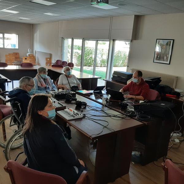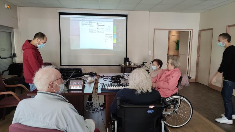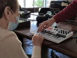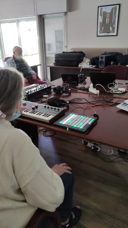 Plusieurs groupes de résidents ont participé à la composition de leurs bandes sono avec le groupe Turnsteak .C’était un moment de découverte grâce à plusieurs tables de mixage.