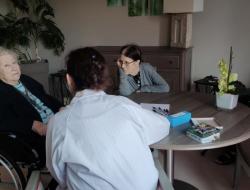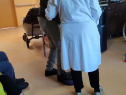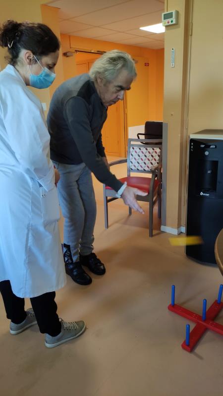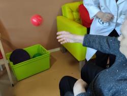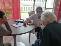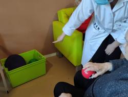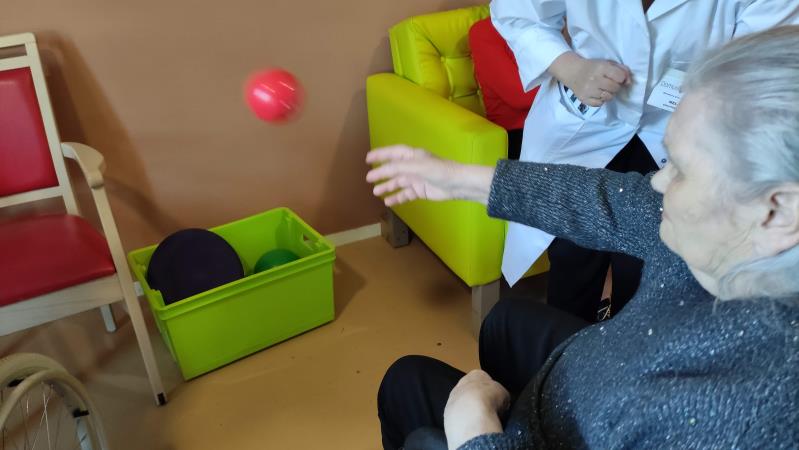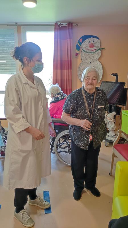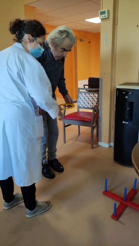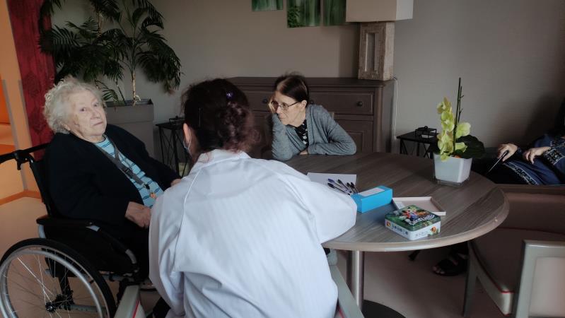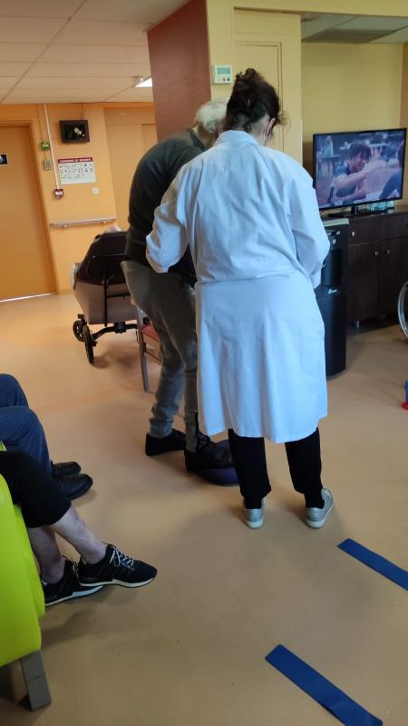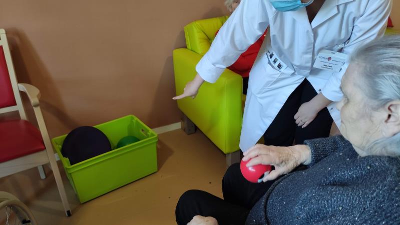Chaque vendredi après-midi, elle propose différents ateliers d'équilibre, de mémoire, du motomed et des temps individuelle avec les résidents.