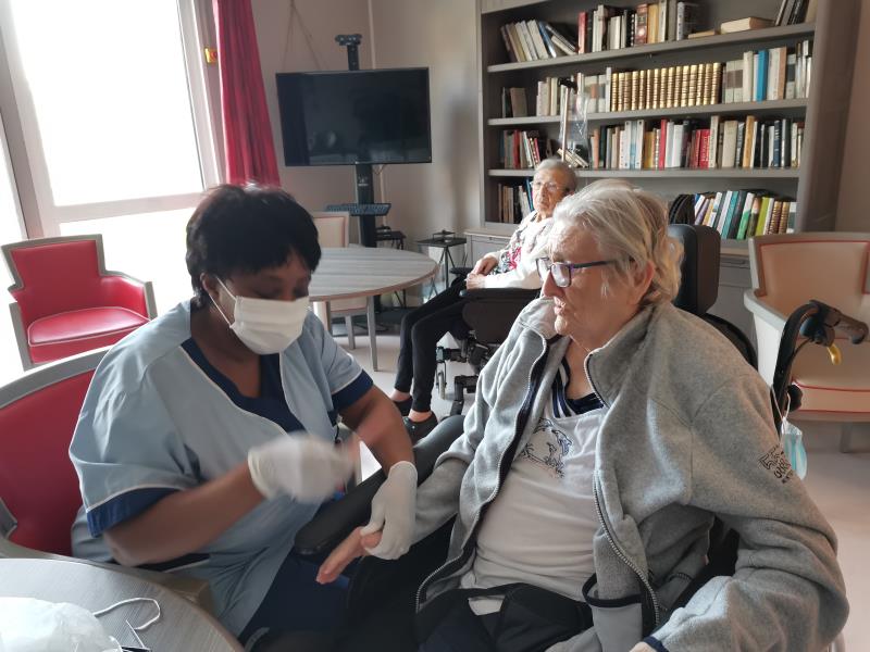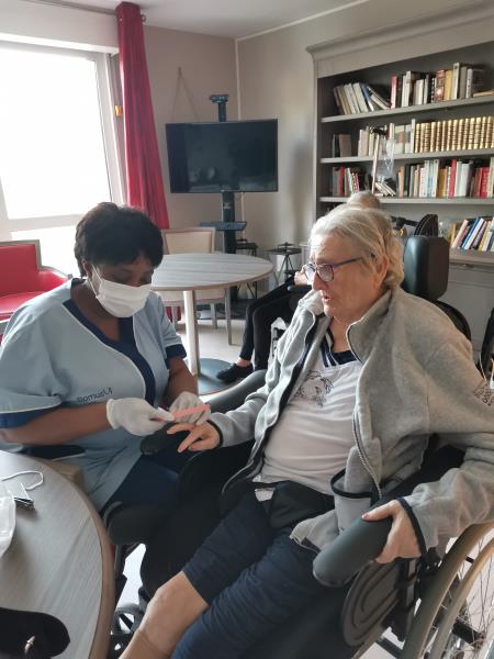 Des manucures, des massages de mains, pose de vernis de différentes couleurs... sont proposés par les soignantes, l'animatrice et Yvelle socio-esthéticienne.