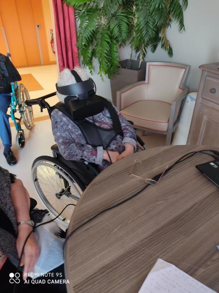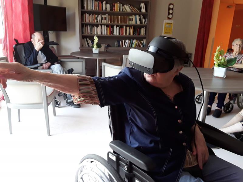 Durant le week-end, Pauline une aide-soignante a proposé l'atelier casque réalité virtuelle aux résidents.