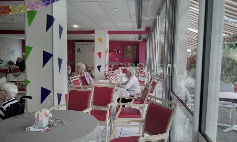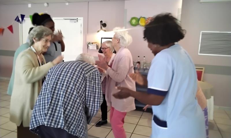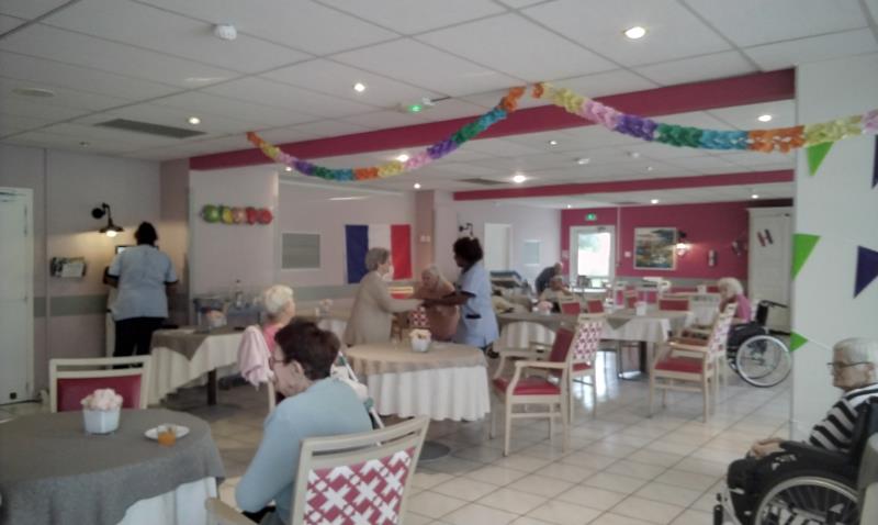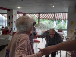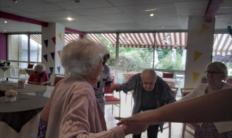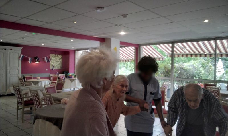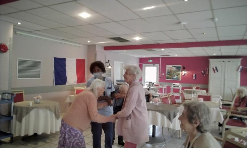 Dimanche après midi, la cadre de santé, Virginia, ainsi que l'équipe soignante présente ce jour, ont célébré le jour du 14 juillet avec les résidents en s'offrant un moment de joie et de partage en musique et danse.