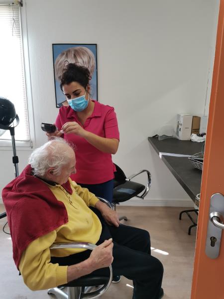 Tous les mardis après-midi, le salon de coiffure est ouvert pour les résidents.