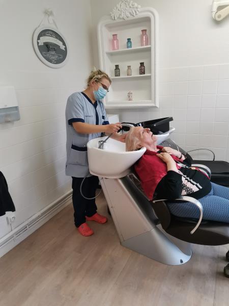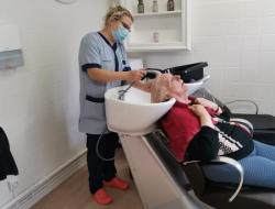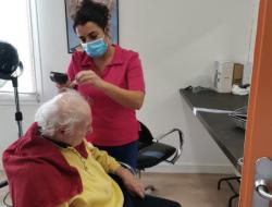 Lucie l’animatrice propose des mises en pli, brushing, shampoing et coupe pour tous les résidents.