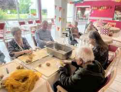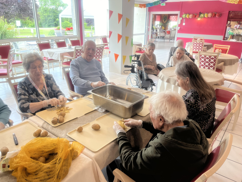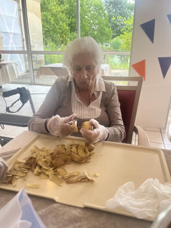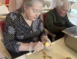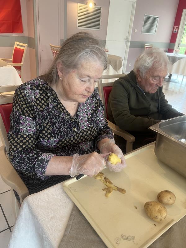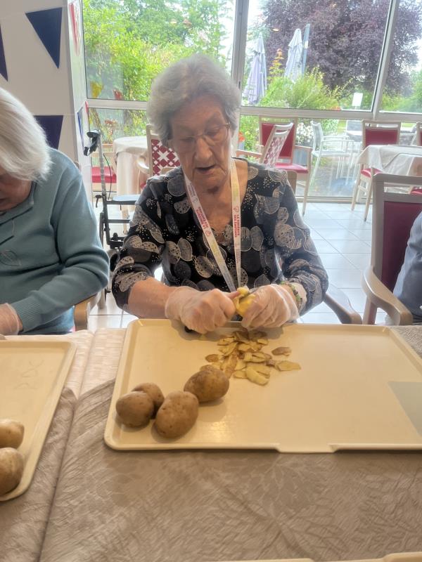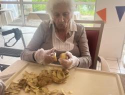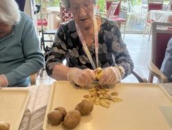 Lundi après midi, les résidents ont aidé la cuisine de la résidence en participant à l’épluchage des pommes de terres pour le repas du lendemain.