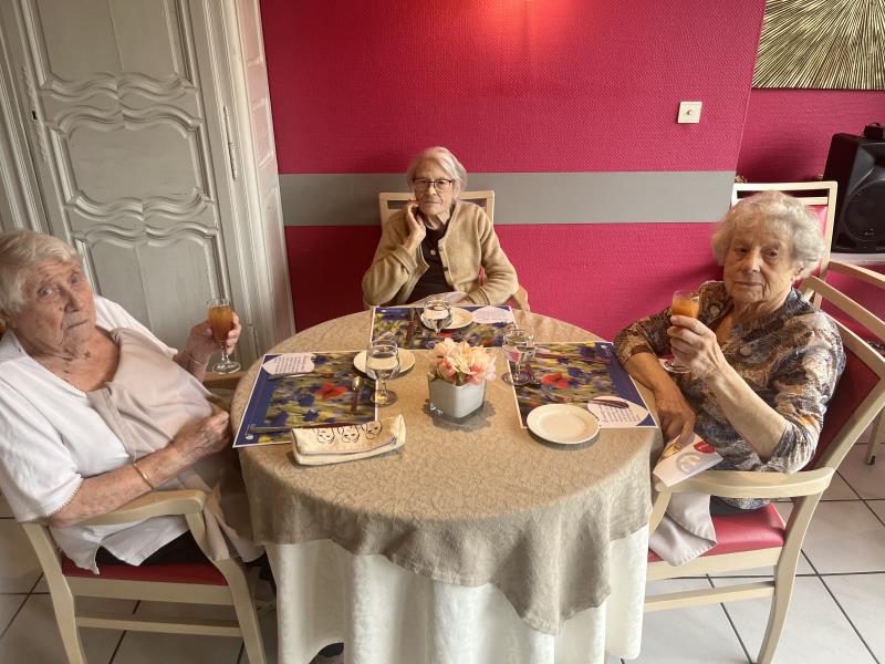 Mercredi midi, les résidents ont célébré le 8 mai comme il se doit. Pour cela, la cuisine leur a préparé un apéritif spécial avec punch et gâteaux apéritif. Les résidents étaient ravis. Un jour qui est gravé dans certaines mémoires : Et oui, certains des résidents étaient nés le 8 mai 1945. Sans oublier, l'équipe hotelliére qui, avec un grand sourire, a fait le service à table (comme tous les jours).