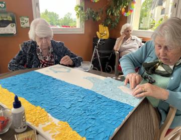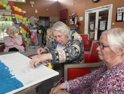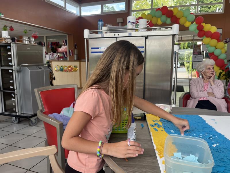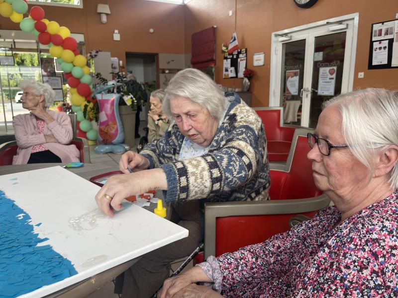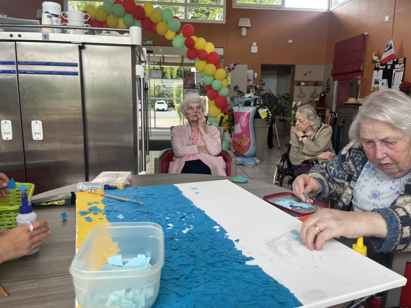Résidence les Lys > Actualités > Continuation de la création du tableau des résidents Continuation de la création du tableau des résidents Publiée le 11/07/2024 Mercredi après midi, les résidents ont continué la création de leur tableau en mosaïque de papier