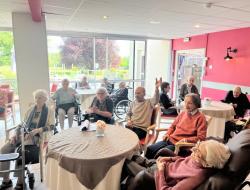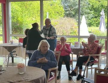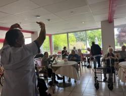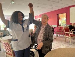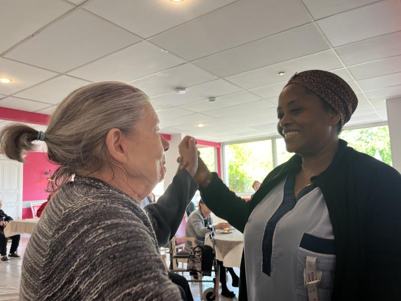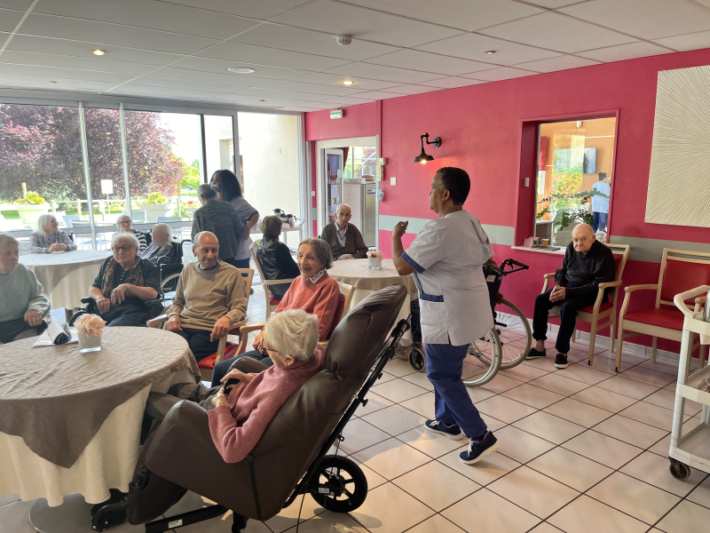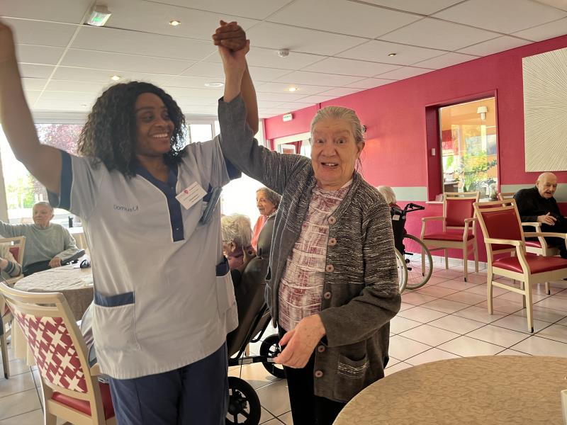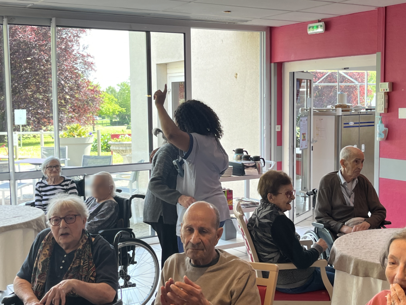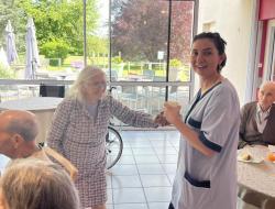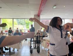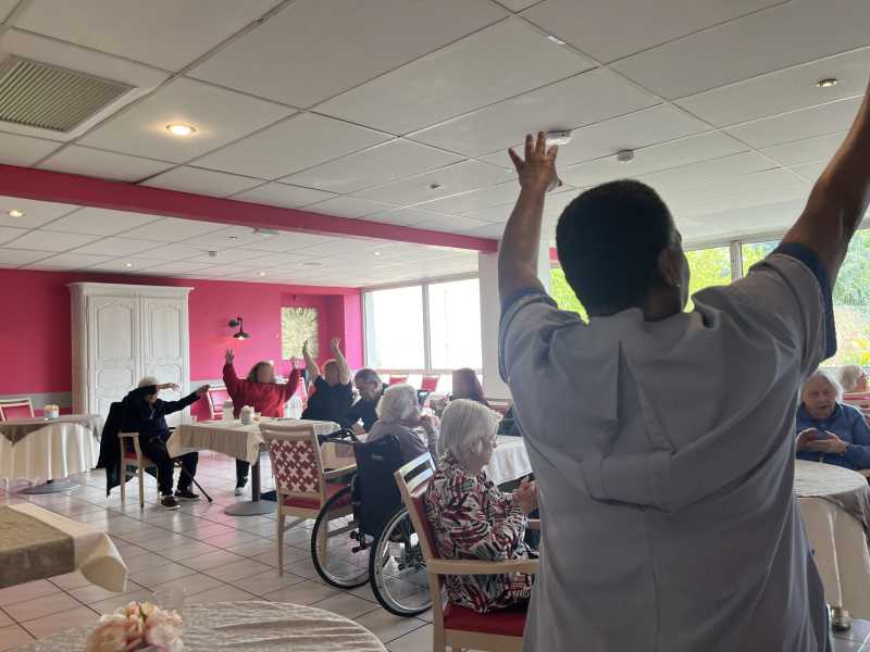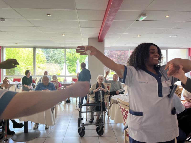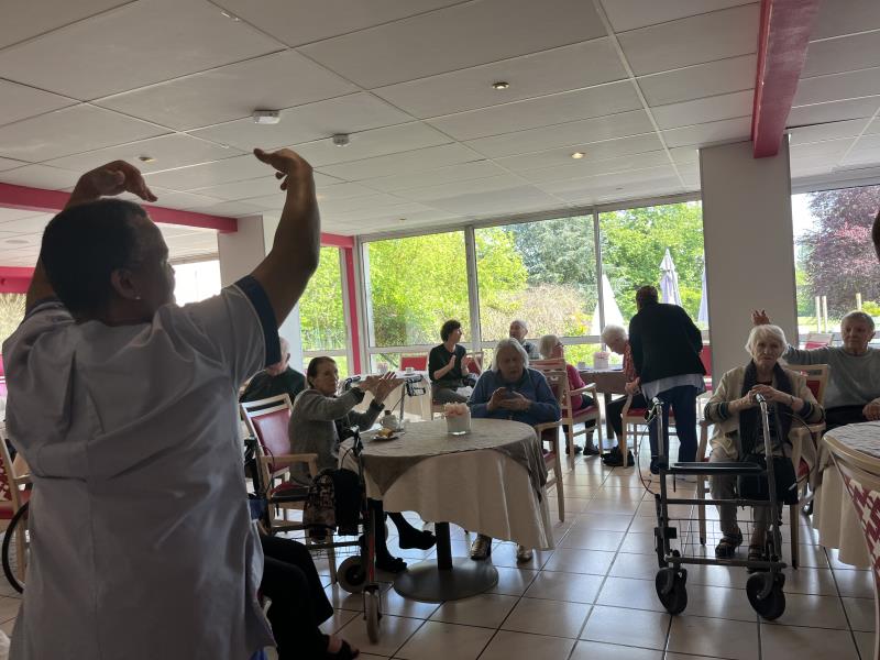 Jeudi après midi, les résidents ont fait une dance Party accompagnés des aides soignantes et de l'animatrice. Des aides soignantes qui sont toujours en forme pour s'amuser, au grand bonheur des résidents. Même les familles présentes se sont prêtées au jeu et ont participé.