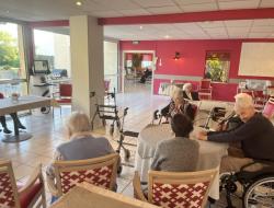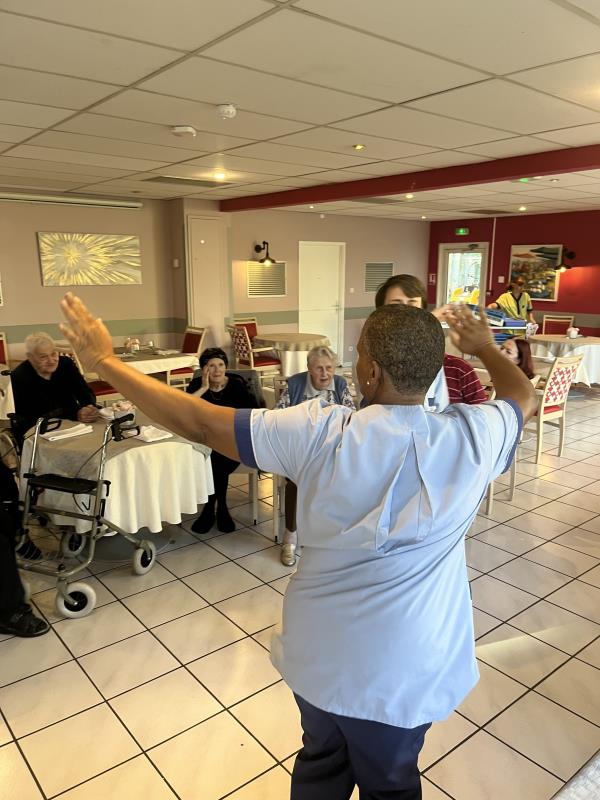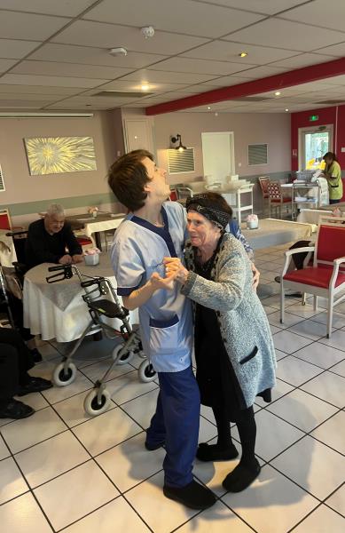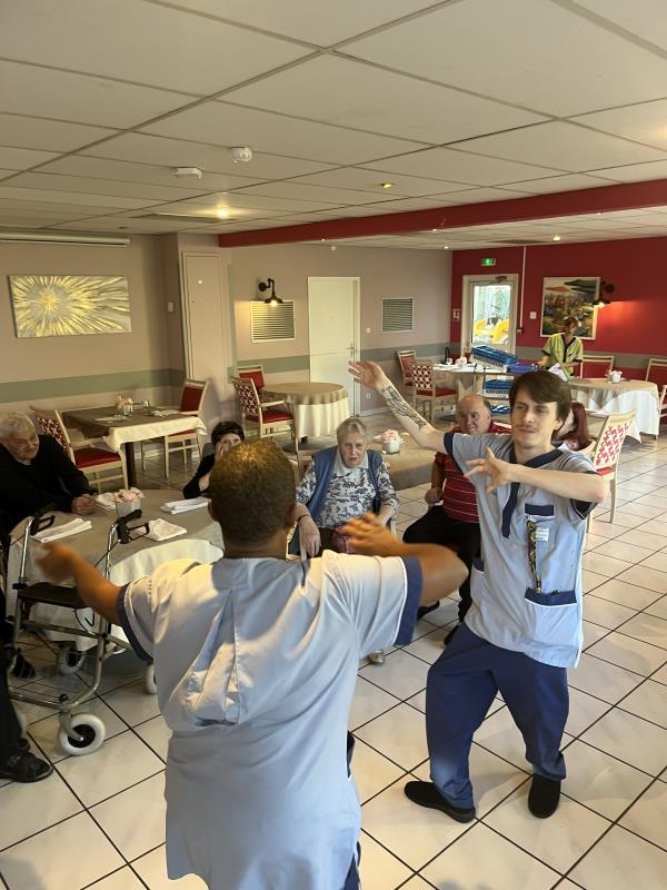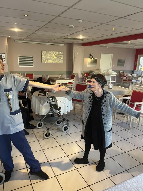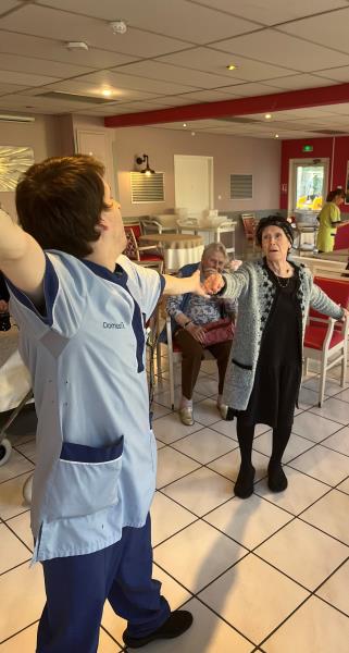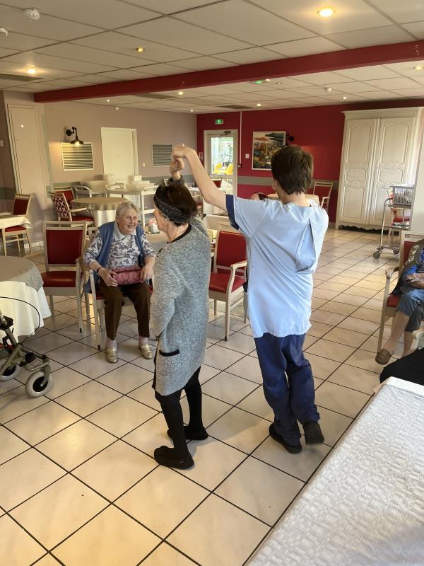 Mardi après midi, les résidents, accompagnés de leurs soignants, ont partagé un moment de détente, de rigolade mais surtout de bonne humeur autour de la danse. Rien de mieux pour profiter de l'après midi tous ensemble !