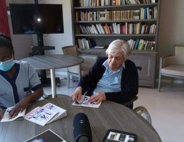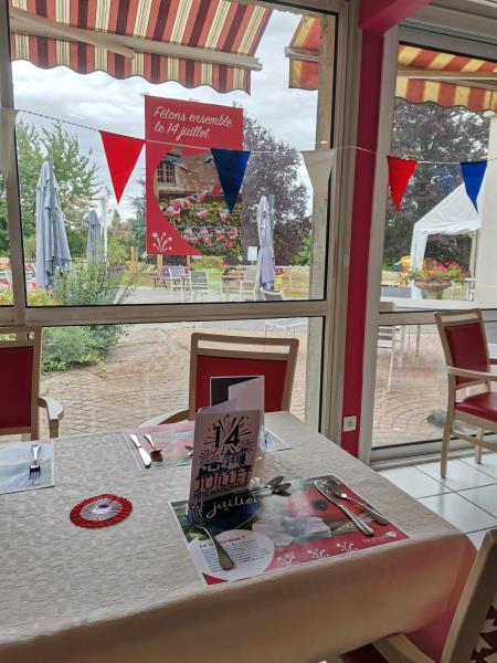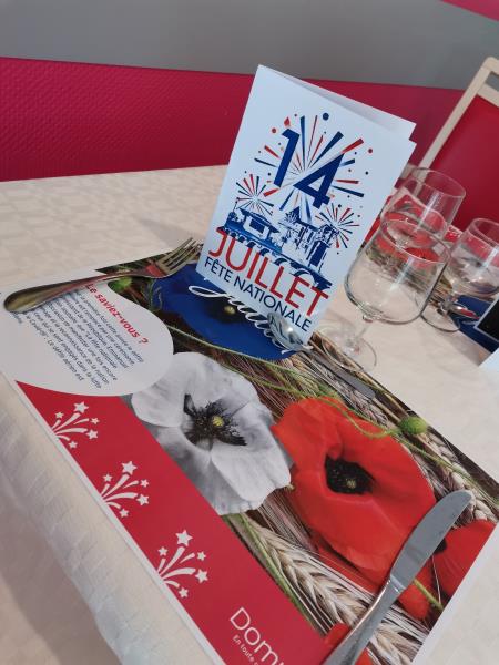 Les résidents ont pu manger sur une table décorée avec les couleurs bleu blanc & rouge.