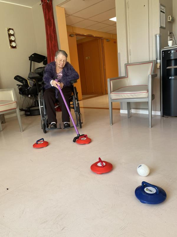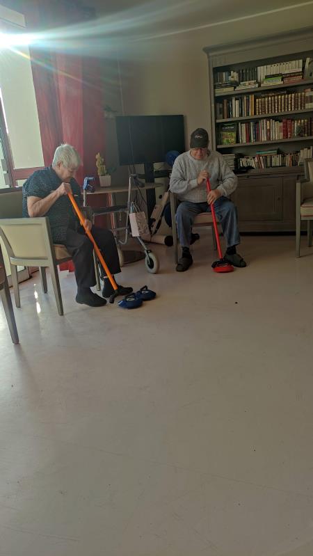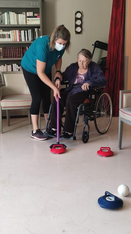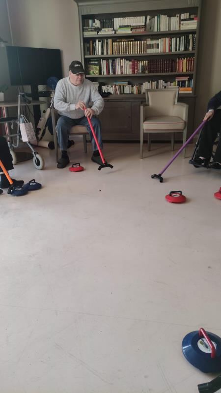 Angélique a proposé un atelier avec un réveil musculaire, une marche et une partie de curling.