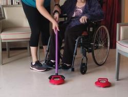 Matilde et Angélique viennent une fois par mois pour faire découvrir différents sports aux résidents.