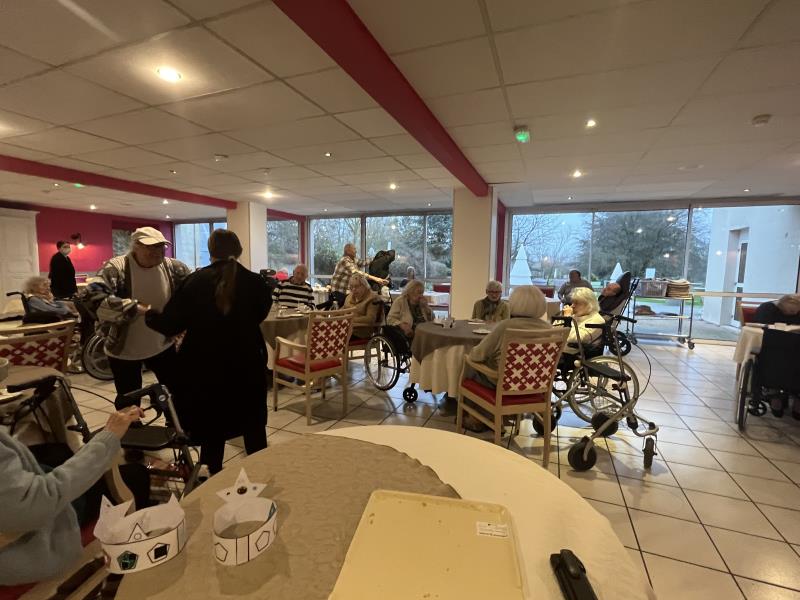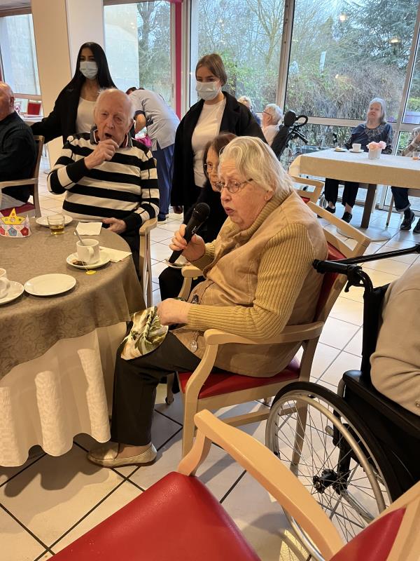 Rien de mieux pour finir la journée de la galette des rois par une dégustation. Pour l'occasion, une petite fête s'est dessinée avec la musique et la bonne humeur générale. Les résidents en ont profité pour améliorer et tester leurs pas de danse ainsi que leurs cordes vocales.