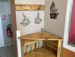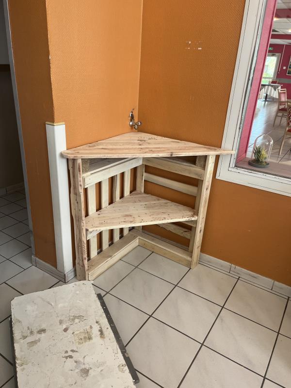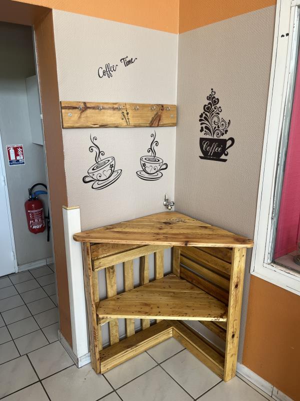 Nous remercions grandement Pascal, l'agent de maintenance, qui a créé le meuble, lui même, entièrement à partir de palettes recyclées.