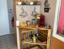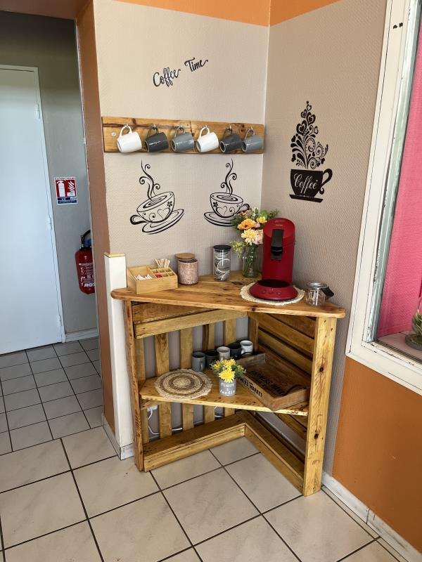 Petite innovation à la résidence: un espace café a été créé, ce dernier est à la disposition des familles qui souhaitent, lors de leurs visites, profiter d'un bon café. Tout le nécessaire est mis à votre disposition : eau, café, tasse, sucre, machine à café, cuillère. Un plateau est également mis pour la vaisselle sale.