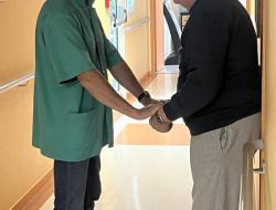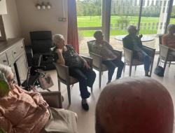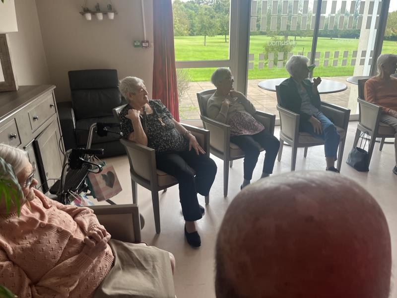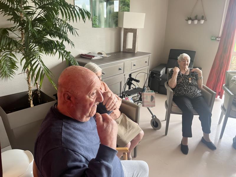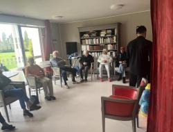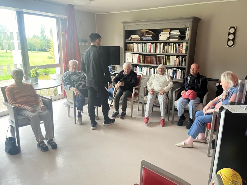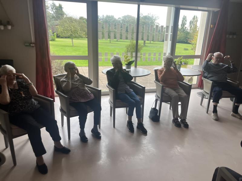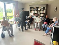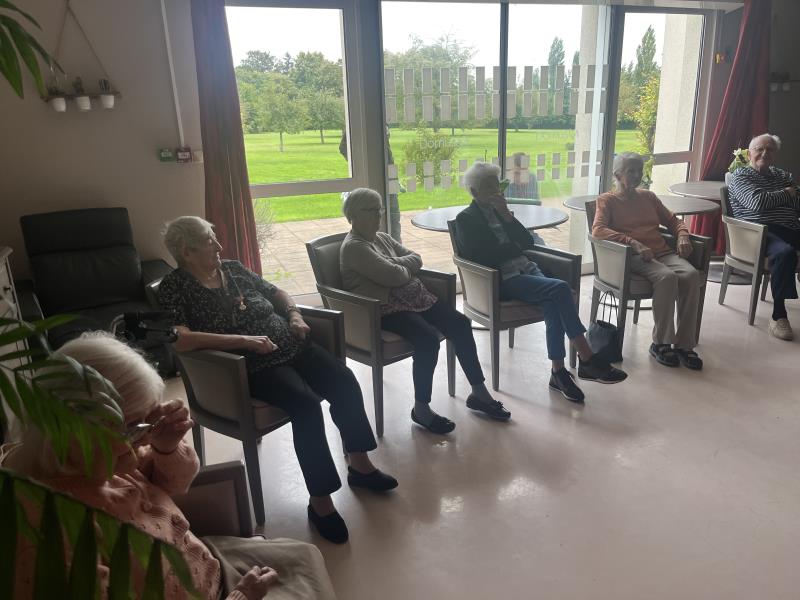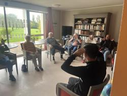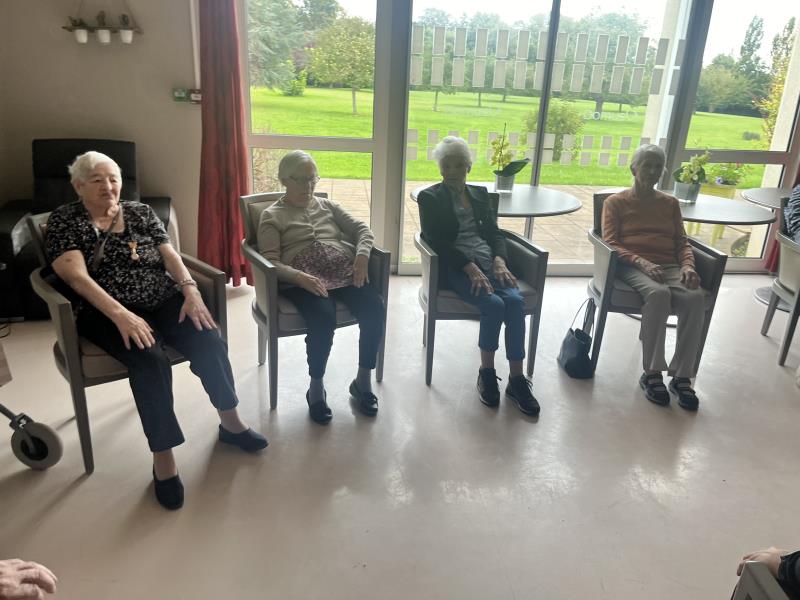 Comme tous les mardis matins, Valentin est venu pour une séance de Gym douce avec les résidents. Pendant ce temps, Didier, le kiné, faisait quelques étirements avec les résidents