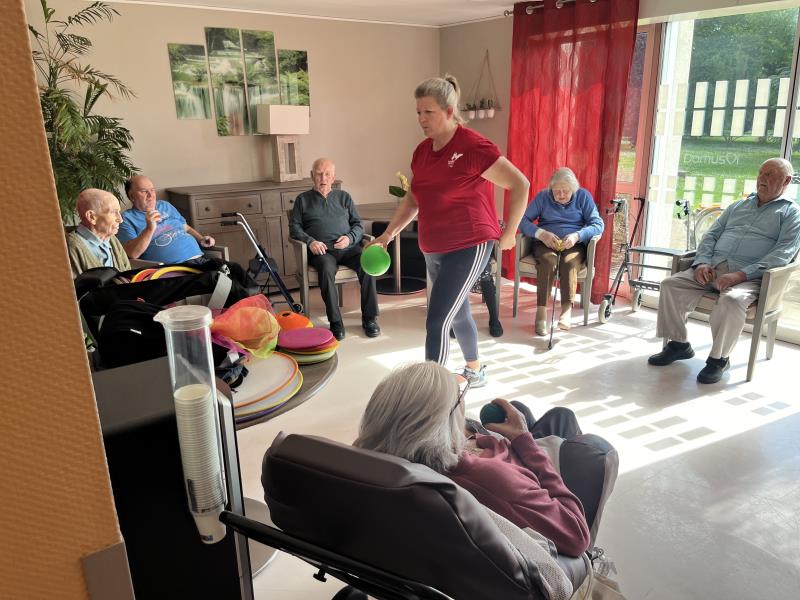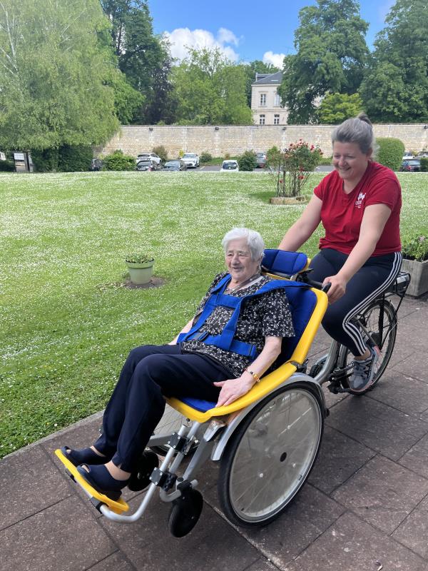 Comme tous les mois, les résidents ont eu la visite d'Angélique, l'intervenante d'Handisport, qui est venue pour une séance de 2 heures. La 1ère heure, les résidents ont fait une petite séance de Gym douce, et la seconde heure, les résidents ont pu faire un tour du parc de la résidence en vélo adapté. Une activité que les résidents ont particulièrement apprécié.