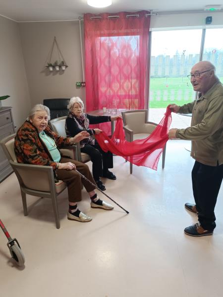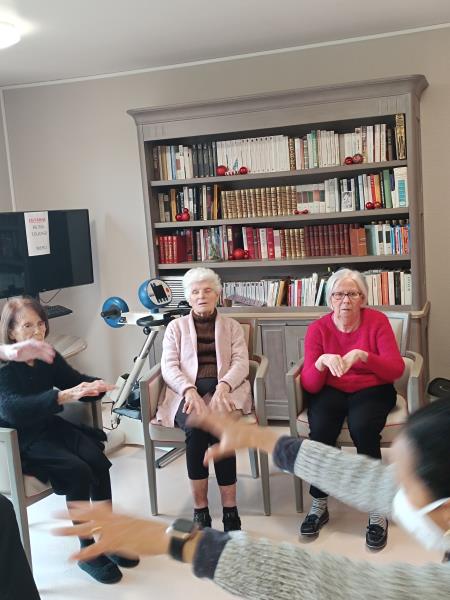 Jeudi a été une journée bien chargée pour les résidents : Le matin, la venue de Maxime d'Handisport pour réveiller le corps et surtout les muscles, accompagné d'Anthony le psychomotricien, suivie de Mayra, la danse thérapeute en début d'après midi. Une journée bien chargée pour les résidents, qui se sont accordés une bonne dose de repos (bien méritée) par la suite.