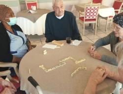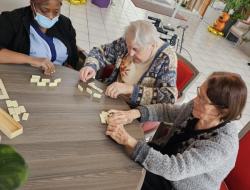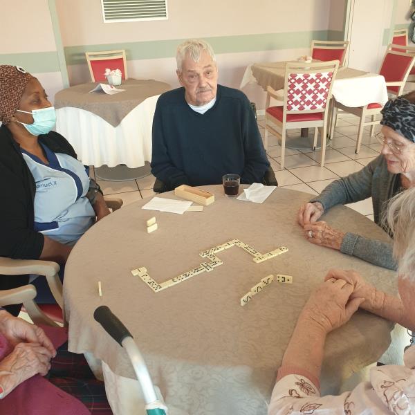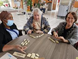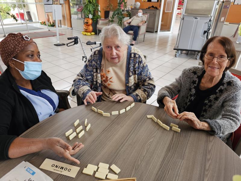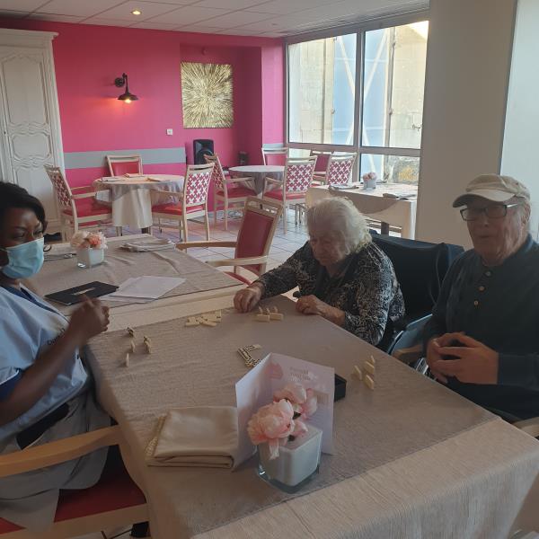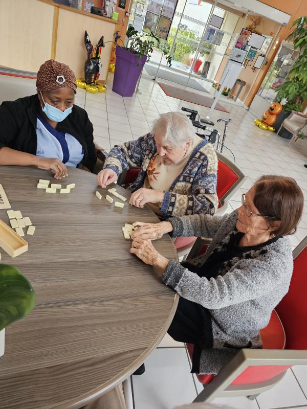 Ce week-end, les résidents ont pu faire des parties de jeux de société, notamment le domino, avec les aides soignantes. Un plaisir pour eux !