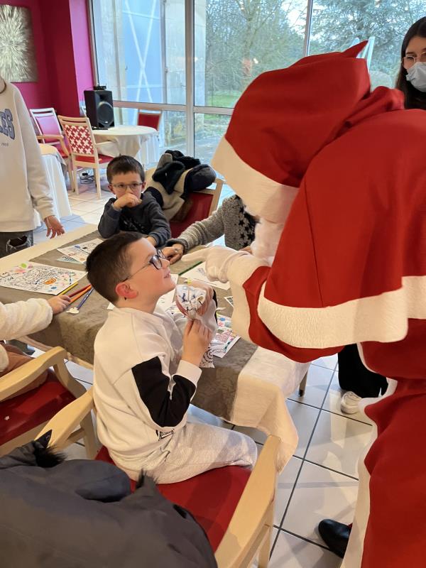 Une petite surprise attendait les enfants : le Père Noël qui en prime leur a donné à chacun un petit sachet de bonbons. Rien de mieux pour les enfants :)