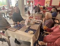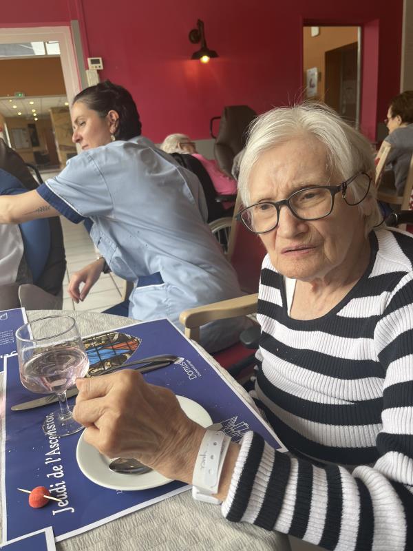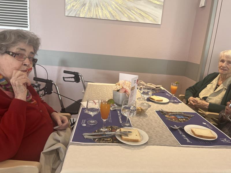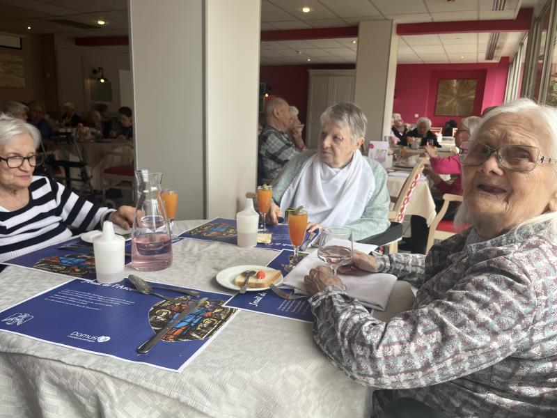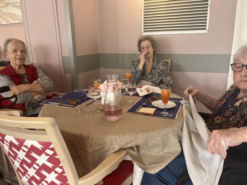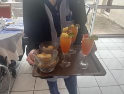 Jeudi midi, les résidents ont eu le droit à un apéritif en ce deuxième jour fériés. Un petit ponch a été concocté spécialement pour l'occasion ainsi que des gâteaux apéritifs. Une petite surprise en accompagnement : une tranche de Kiwi, et un bonbon. Les résidents, qu'ils ont pris du ponch ou non, ont eu le droit à leur bonbon, ce qu'ils ont particulièrement aimé. Et quoi de mieux pour ce repas que de mettre de la musique en fond. Pour de la joie et de la bonne humeur, la play list de Claude François en a ravi plus d'un. Et bien évidemment, des plateaux étaient prévus pour les résidents qui mangent en chambre.