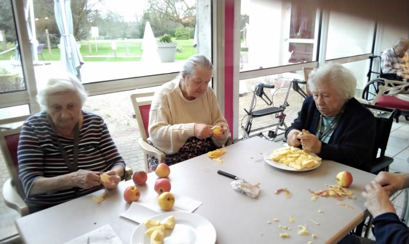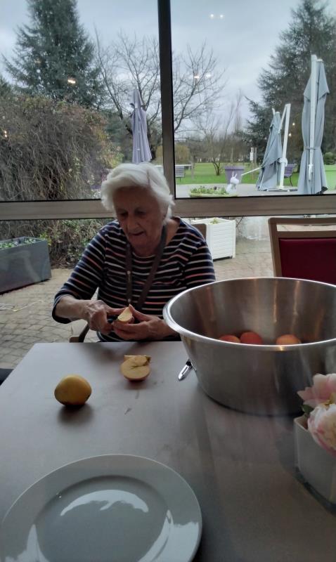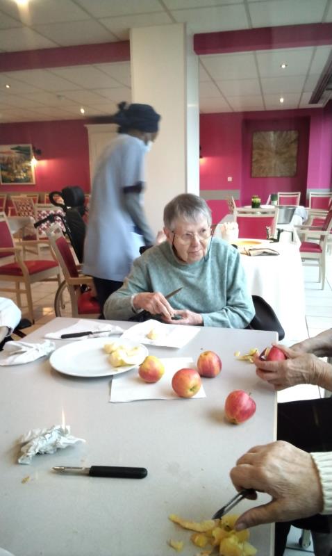 De bonnes tartes aux pommes ont été cuisinées par les résidents et dégustées lors du goûter de samedi. Mélanie ergothérapeute a proposé cet atelier.