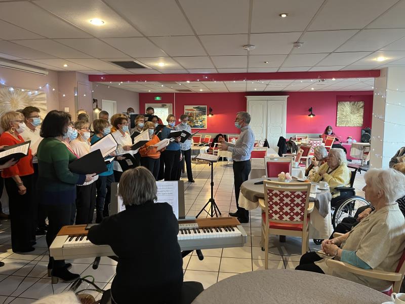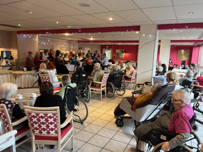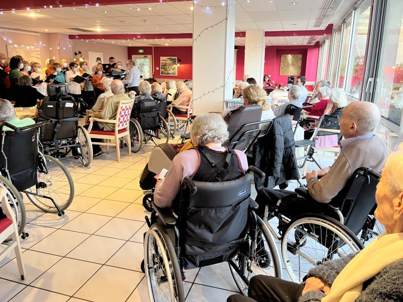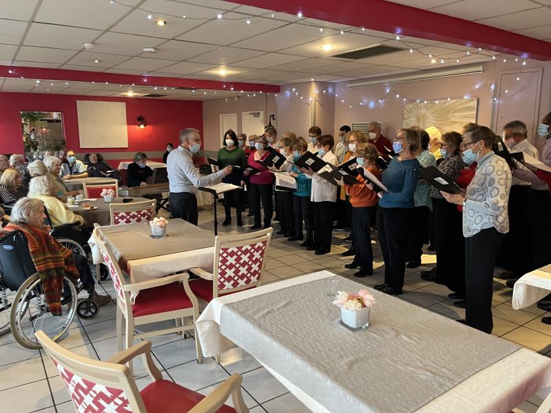 L'occasion pour une résidente, qui faisait partie de la chorale avant son arrivée à la résidence, de rechanter en compagnie de ses amis