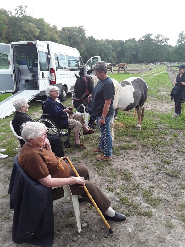Mardi après midi, quelques résidents ont été à l'équithérapie pour passer un moment avec Shelly, la ponette, et un groupe d'enfant en plein cours d'apprentissage. Que ce soit le moment papouille avec la ponette, la discussion avec la directrice des lieux ou encore la découverte de l'apprentissage des enfants : C'est l'unanimité pour tout le monde, Ils ADORENT !