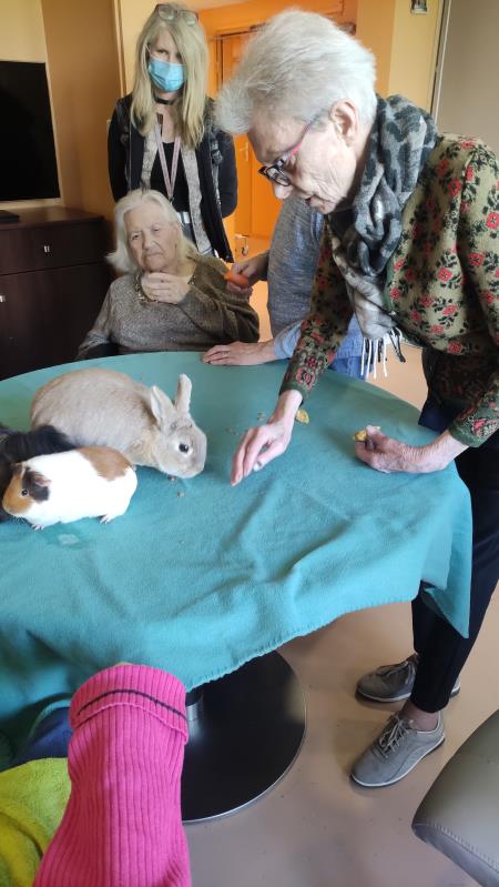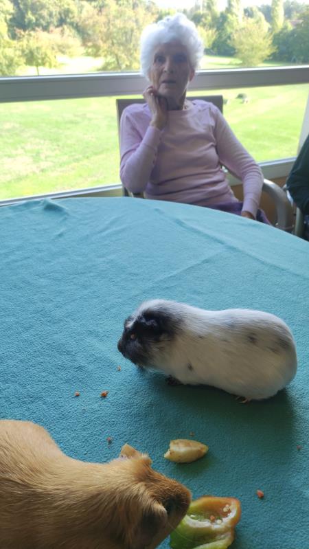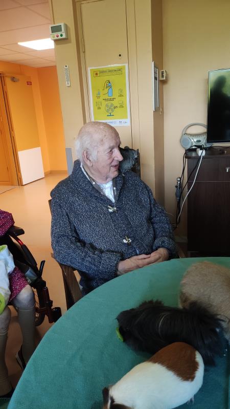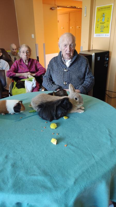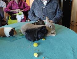 Bisotte, Bounty, Speculos, Paillette, Macaron , Pims ... de très beaux cochons d'Inde et les lapins étaient ravis de retrouver les résidents et surtout d'avoir de nombreuses caresses !