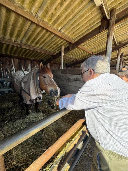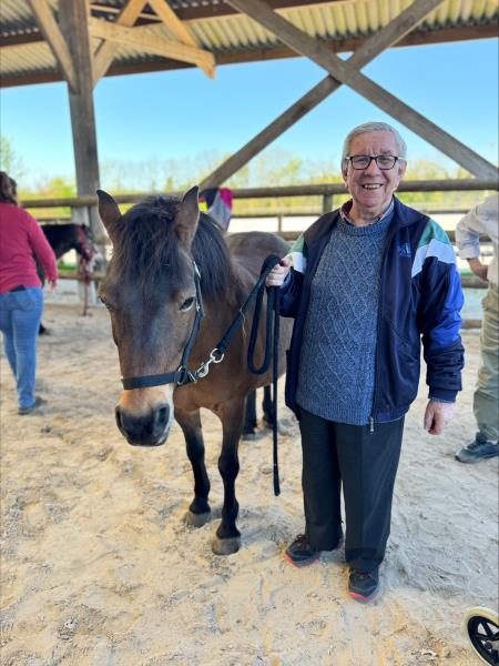 Lors de notre sortie à l’équithérapie, nos résidents ont passé un moment particulièrement agréable au contact des chevaux. Ils ont eu l’occasion de les brosser, de les promener et d’interagir avec eux, toujours sous l’œil attentif de la dresseuse. Des jeux de ballons ont également été organisés, apportant une touche ludique à cette expérience. Le tout s’est déroulé dans une ambiance chaleureuse et conviviale. Nos résidents sont repartis ravis de cette belle activité, riche en échanges et en émotions positives.