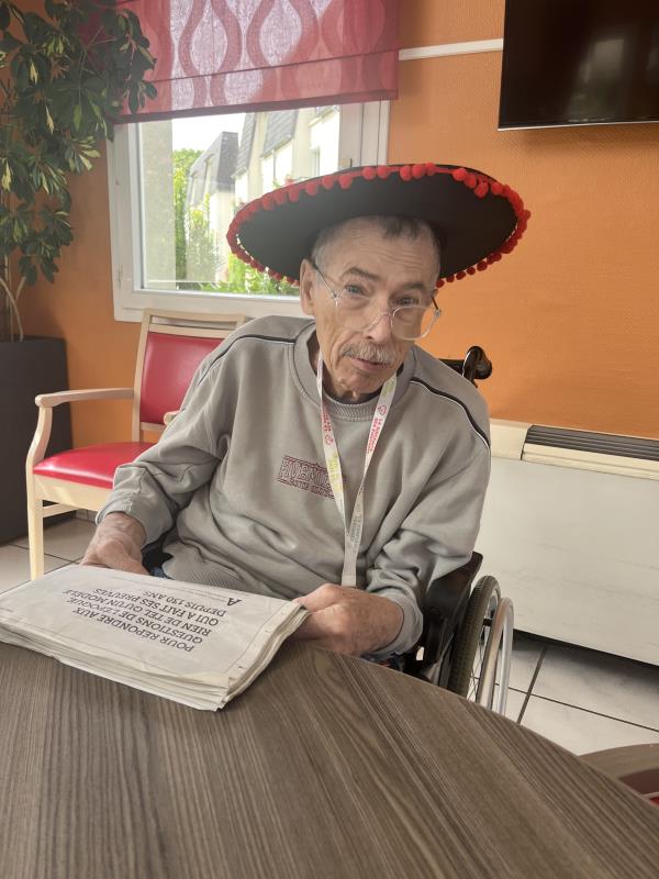 Résidence les Lys > Actualités > OLLE OLLE Publiée le 20/05/2024 Les résidents se sont prêtés au jeu, que ce soit le temps d'une photo ou d'un repas avec les sombreros Espagnols. Rire ne fait pas de mal, bien au contraire.