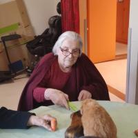 Publiée le 21/03/2022Aujourd’hui, nous avons eu le retour de Vanessa et ses petits animaux. C'est un réel plaisir de les revoir sur la résidence. Bounty, Carotte ... étaient ravis de retrouver les résidents et surtout d'avoir de nombreuses caresses ! Les résidents on pu avoir une visite en chambre.&nb [...] Lire la suite
