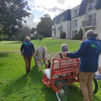 Publiée le 05/10/2021Mimo l’Âne est venu nous rendre visite Lundi 4 Octobre pour le plus grand plaisir des résidents. Entre deux averses, ils ont pu se balader dans le parc en mandoline. Un moment très apprécié pour les résidents et très gourmand pour l'âne qui en a profité pour [...] Lire la suite
