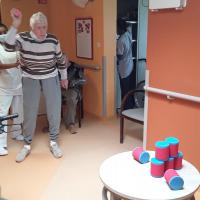 Publiée le 21/05/2021Clervie l’ergothérapeute de la résidence Les Lys, propose un atelier chaque semaine. Elle est présente le mardi et mercredi chaque semaine. Les ateliers sont variés (motricité, cognitifs…). Ce mercredi elle a proposé un atelier motricité avec un jeu de chamboule tout, accompagné [...] Lire la suite