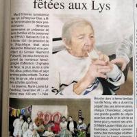 Publiée le 26/02/2021Pour les 100 ans de 2 de nos résidentes, nous avons eu l'honneur d'avoir un article dans " Oise Hebdo". La résidence les Lys est heureuse de vous partager cet article. Lire la suite