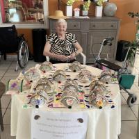 Publiée le 07/06/2024Vendredi après midi, Madame A. a été très contente de présenter son stand de hérissons. Elle a été très heureuse d'en vendre quelques uns pour le Téléthon. Les visiteurs ont été impressionnés du résultat de ce travail. Une activité très minutieuse e [...] Lire la suite