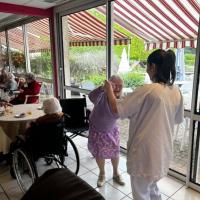 Publiée le 30/04/2024Dimanche après midi, les aides soignantes et aide soignant ont fait une activité crêpes que les résidents ont particulièrement appréciés. Ils étaient très contents, ils ont pu en déguster autant qu'ils le souhaitaient. Ensuite, un petit moment de musique et de danse tous ensembles a permis de faire dig& [...] Lire la suite