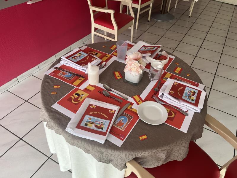 Vendredi midi avait lieu le repas Espagnol, organisé par la résidence. Vendredi matin a été la matinée des préparatifs pour les professionnels entre la salle et les repas préparés avec soin par l'équipe de cuisine.