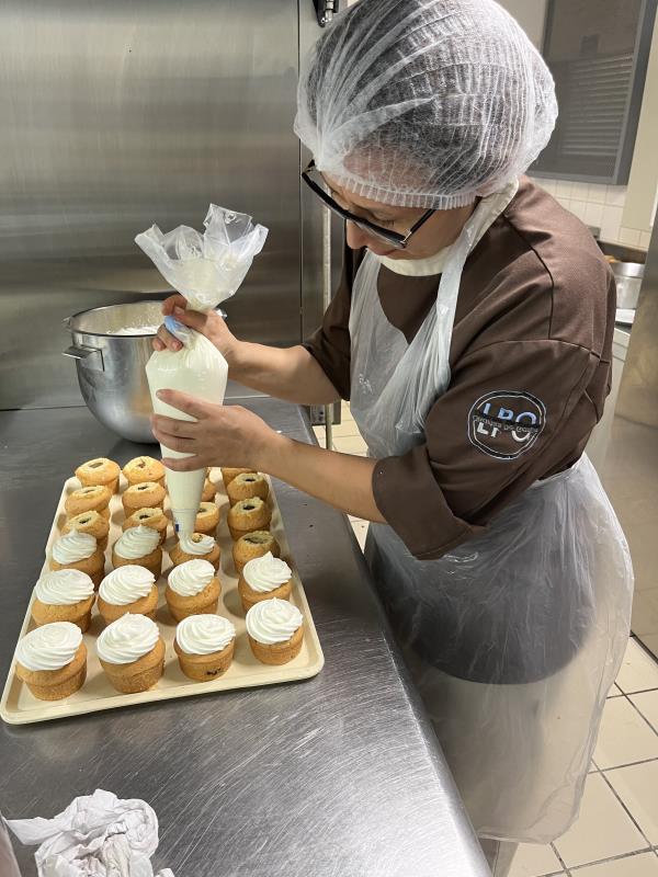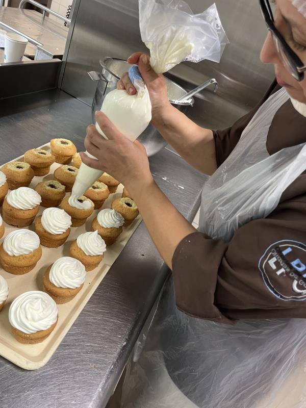 Résidence les Lys > Actualités > Rachida en plein travail Rachida en plein travail Publiée le 23/08/2023 Mercredi après midi, Rachida, la pâtissière, est en pleine préparation des desserts du lendemain : au rendez-vous "cupcake surprise "