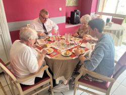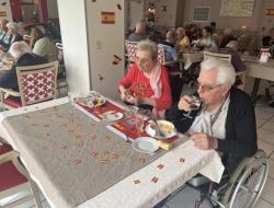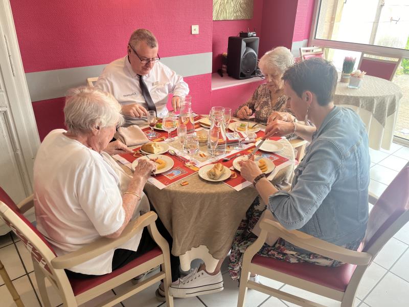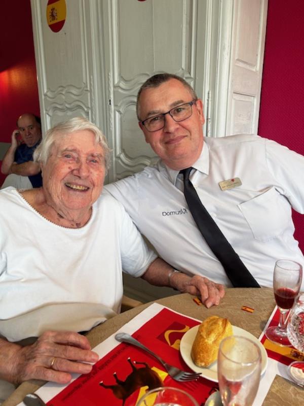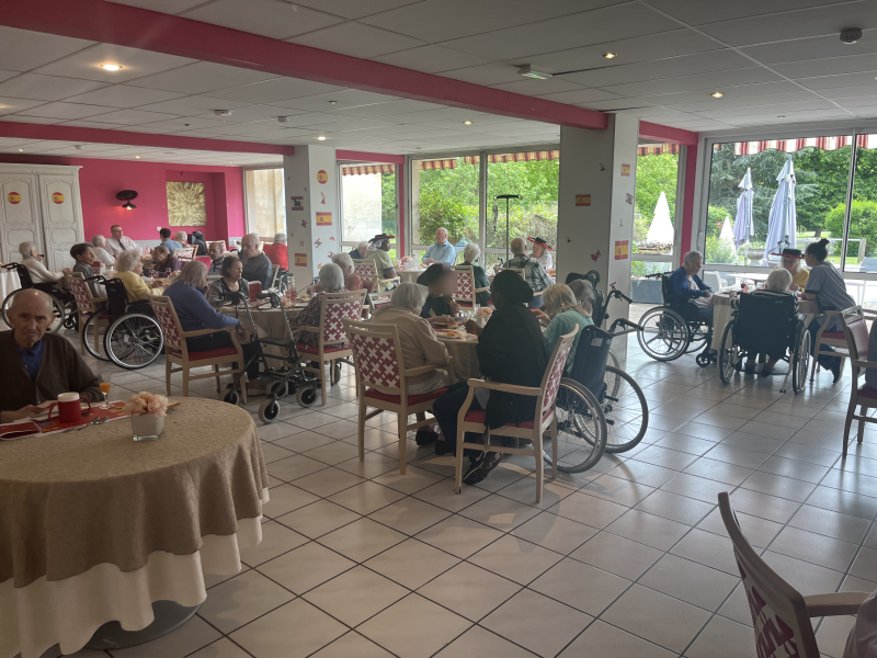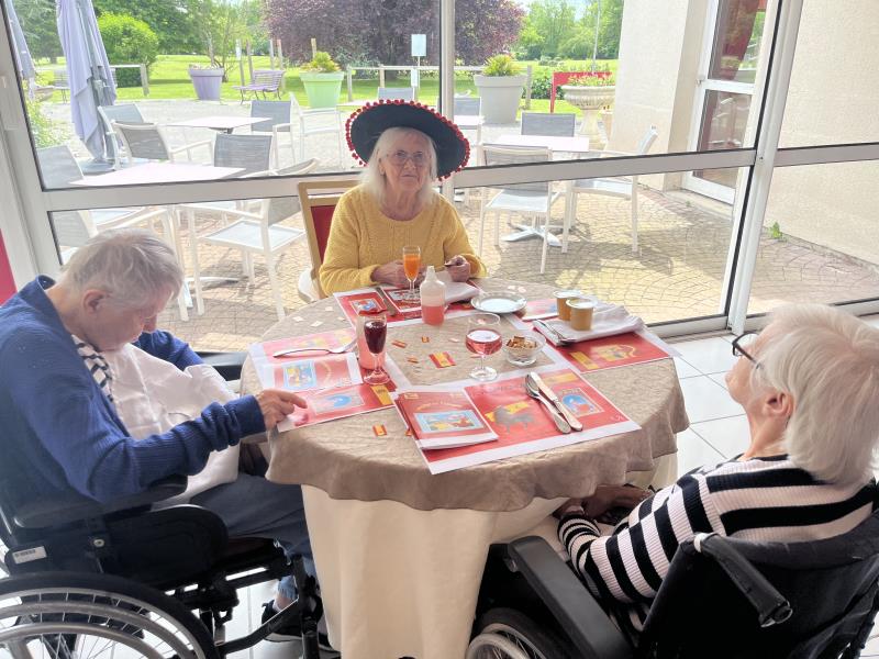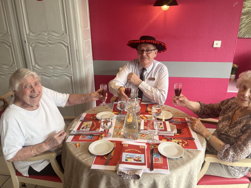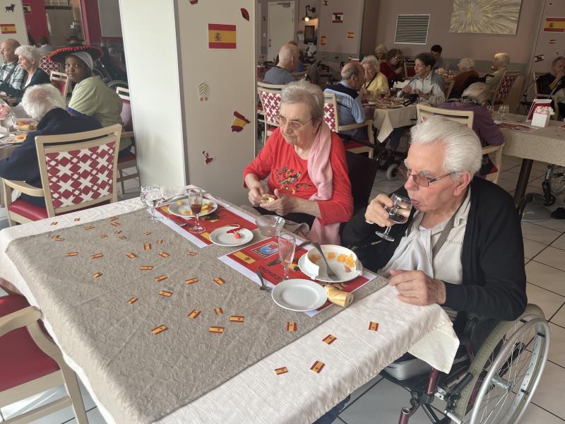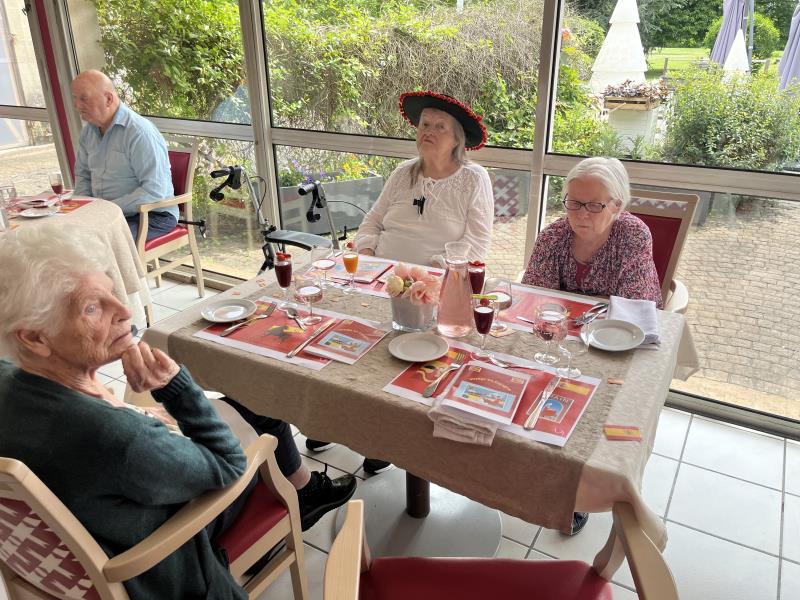 Le repas Espagnol de vendredi midi s'est déroulé merveilleusement bien. Les résidents et professionnels étaient ravis ! Des professionnels, tel que le gouvernant, la directrice, un stagiaire en soin et une ASH, se sont glissés avec les résidents pour pouvoir partager ce repas tous ensemble. Un quiz sur l'Espagne a également été préparé.