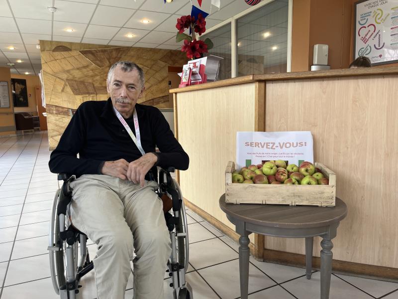Situé à l'accueil, une cagette est mise à disposition pour que tout le monde puisse profiter des fruits du verger de la résidence. Ces fruits sont cueillis par les résidents eux mêmes. Nous les en remercions vivement.