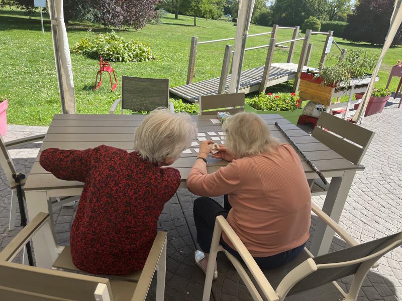 Résidence les Lys > Actualités > Soleil + mémoire = combo parfait Soleil + mémoire = combo parfait Publiée le 23/08/2023 Rien de mieux que le soleil pour une petite activité mémoire sur la terrasse