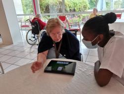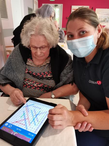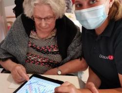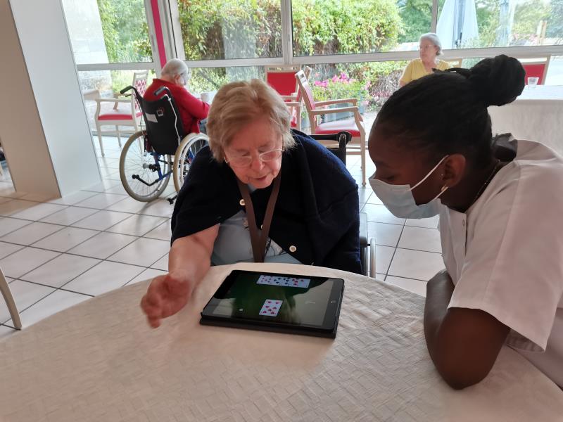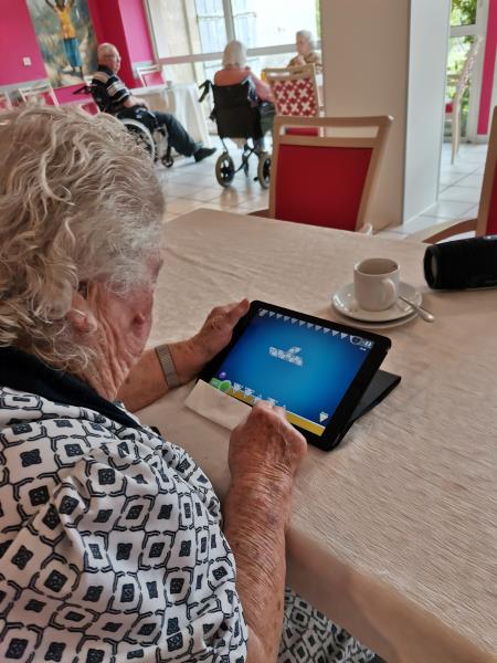 Résidence les Lys > Actualités > Tablettes Tablettes Publiée le 02/08/2020 Les résidents profitent des tablettes pour faire des jeux interactifs tel que : - Triominos, -Solitaire , - Mots croisés ….