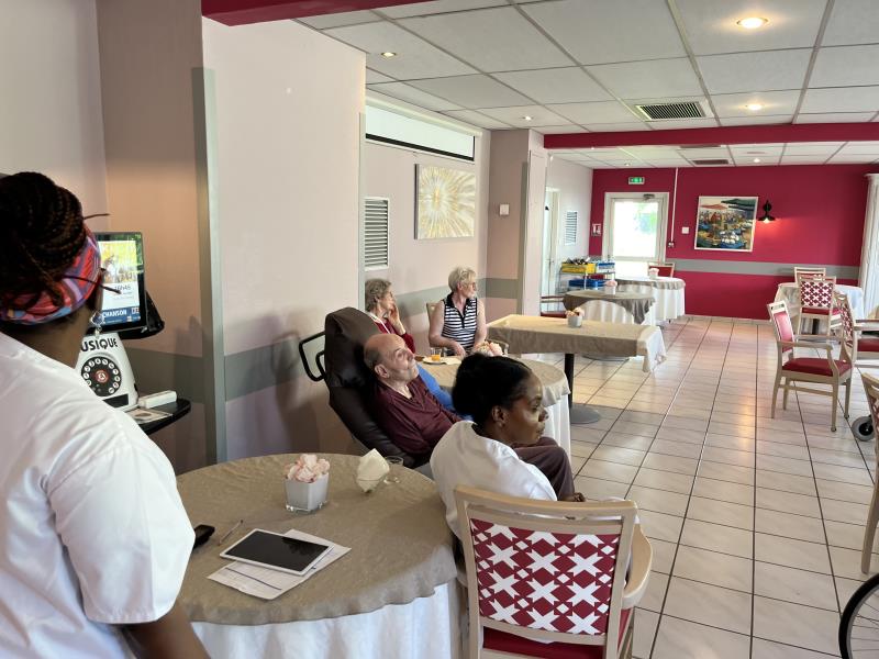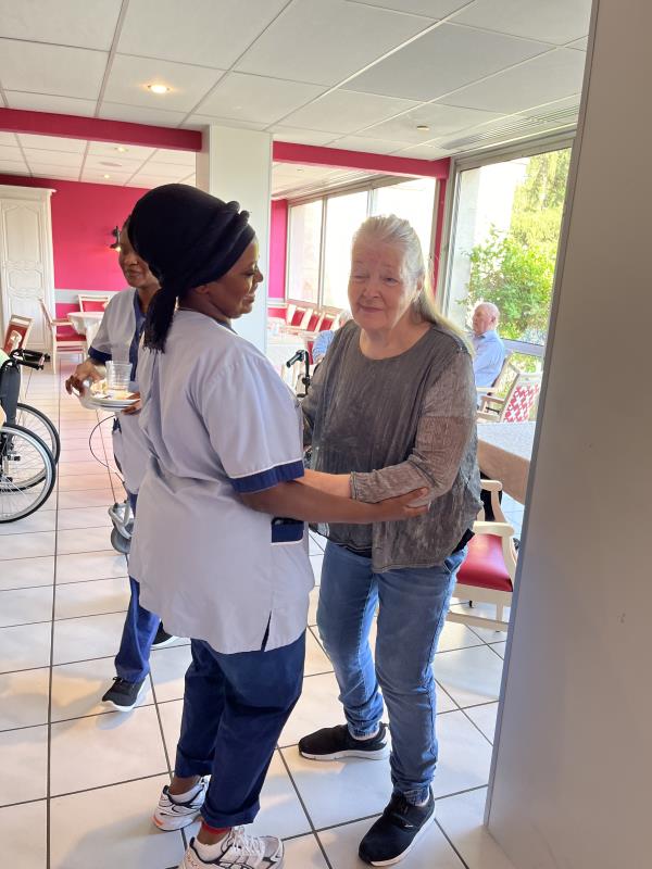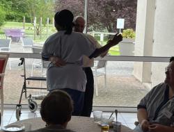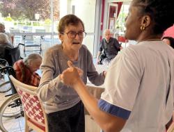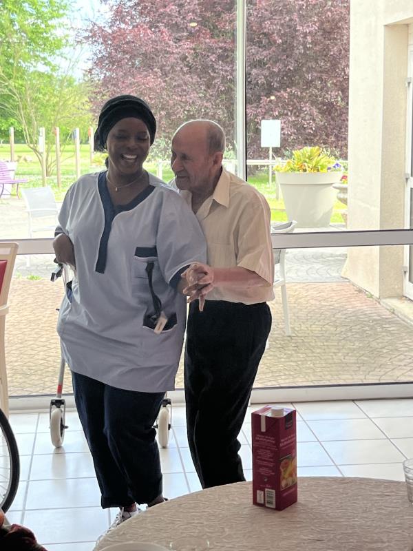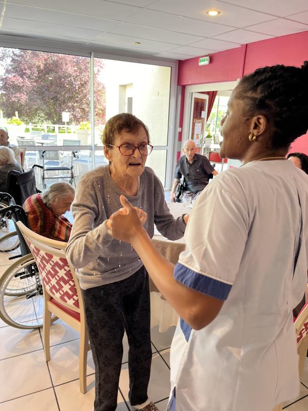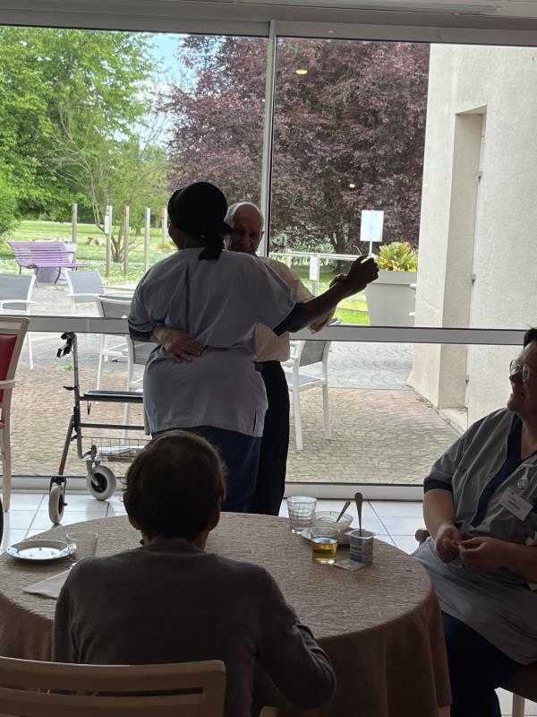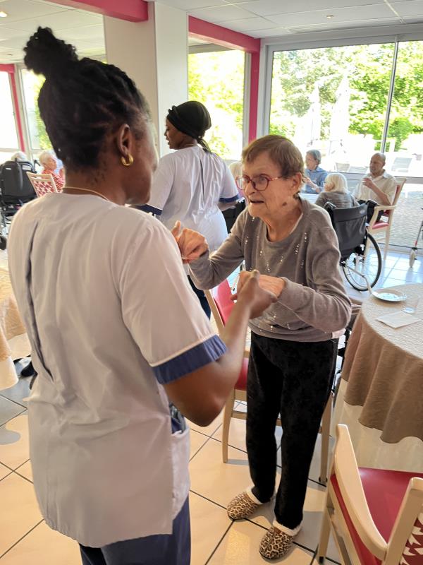 Lundi après midi, pendant le gouter, de la musique a été mise pour accompagner les résidents. Certains se sont pris au jeu et se sont levés pour danser. Cela a été l'occasion de souhaiter un joyeux anniversaire à Madame A qui, comme elle dit, a fêté ses 24 ans ( à quelques années près), parce qu'après tout, l'âge n'est qu'un chiffre, tout est dans la tête. Madame A a également pu avoir une danse avec sa fille qui a rendu les deux femmes heureuses!