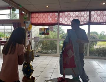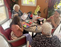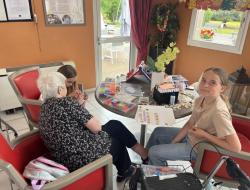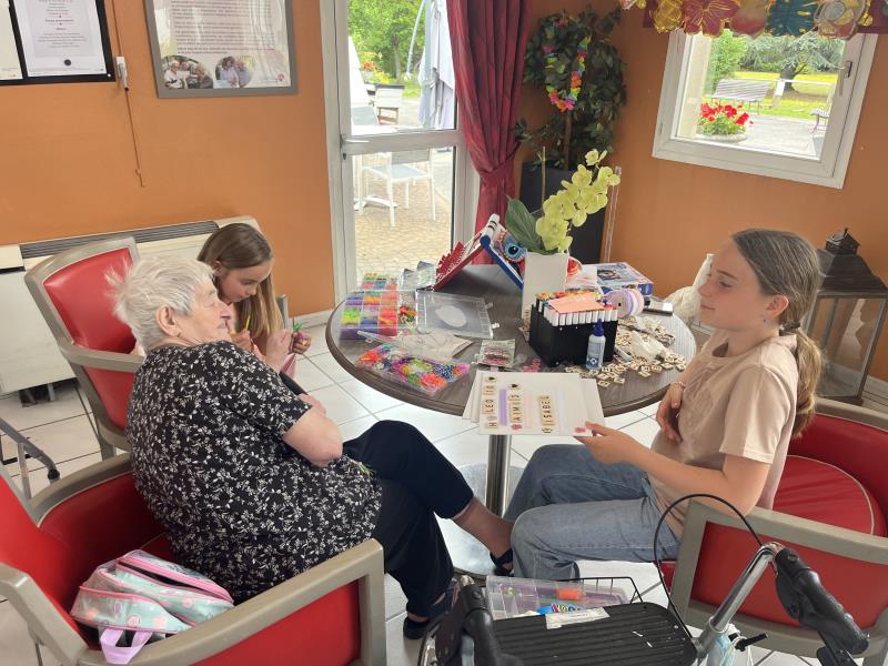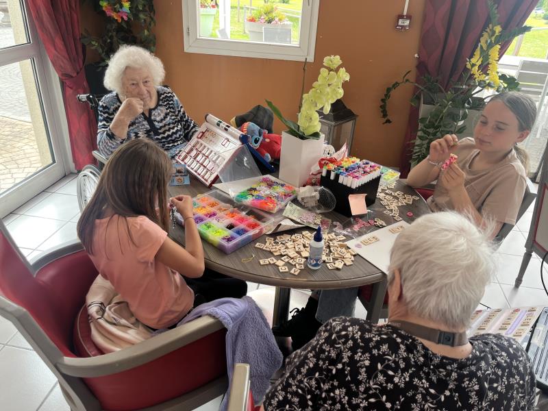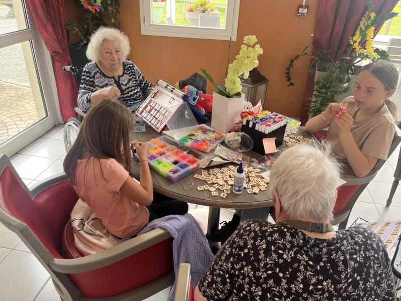 Mercredi, Marie, 10 ans, et Chelcy, 7 ans, sont venues à la résidence pour faire différentes activités avec les résidents. Elles ont fait des bracelets, participer à la création d'un tableau, discuté, aidé à la décoration ainsi que profité du parc de la résidence.