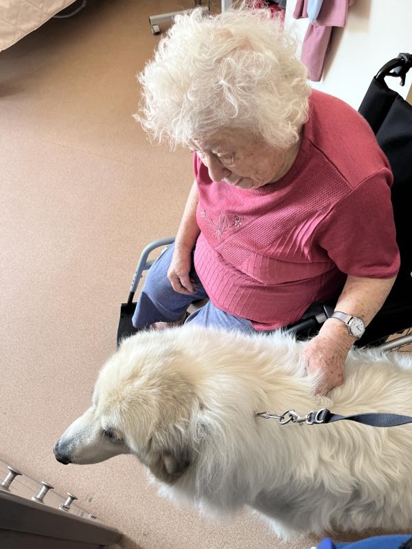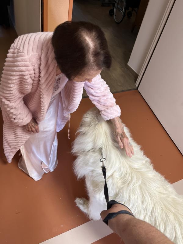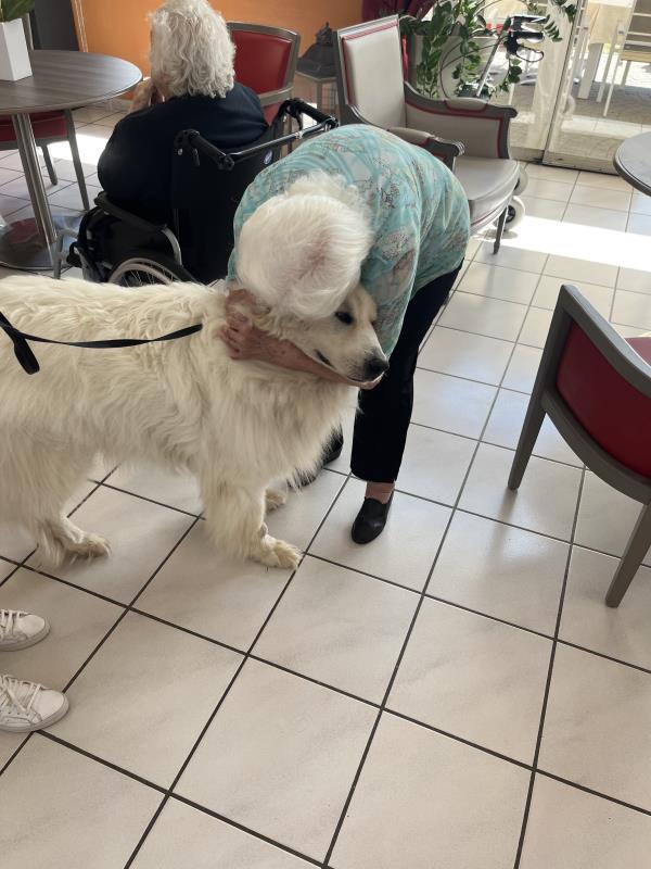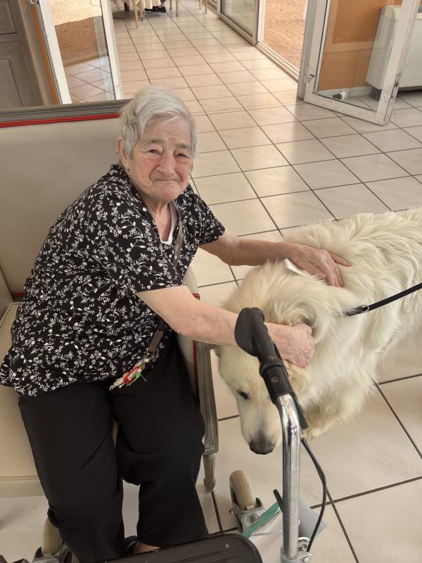 Résidence les Lys > Actualités > Visite de Louna Visite de Louna Publiée le 21/07/2023 Jeudi, notre (grande) boule de poil préférée nous a rendu visite pour une séance câlin.